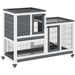 Pawhut - Wooden Rabbit Hutch Elevated Bunny Cage Indoor Small Animal Habitat With Enclosed Run With Wheels, Ramp, Removable Tray Ideal For Guinea Pigs - Gray