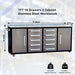 Storage Cabinets With Workbench (10 Drawers & 2 Cabinets) - Silver