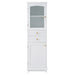 Tall Bathroom Storage Cabinet With Glass Doors, Free-Standing, Two Drawers, And Adjustable Shelves, MDF Board, Painted Perfect For Displaying Your Favorite Items - White
