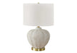 - Elegant Design: This 21-inch table lamp features a transitional style with a textured cream resin base, gold metal footing, and an ivory linen fabric shade, complemented by a round gold finial for a sophisticated look.