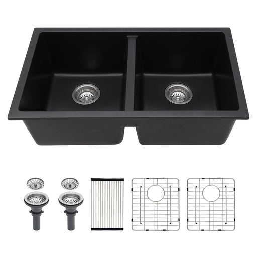 Preço original $699.99Preço original $699.99 - Preço original $699.99Preço original $699.99Preço atual $469.99$469.99 - $469.99Preço atual $469.99Double Bowl Drop In Kitchen Sink 33" X 22" With 16 Gauge Stainless Steel And 2 10" Deep Basins - Gunmetal Black