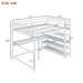 Full Size Loft Bed With Storage Shelves And Under Bed Desk - White