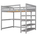 Full Size Loft Bed With Storage Shelves And Under Bed Desk - Gray