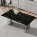 Modern Minimalist Dining Table Imitation Marble Glass With Metal Legs - Black