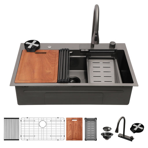 Preço original $699.99 - Preço original $769.99Preço original $699.99 - Preço original $769.99Preço original $699.99$469.99 - $509.99$469.99 - $509.99Preço atual $469.9933" Stainless Steel Single Bowl Kitchen Sink With Waterfall Flow