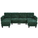 Sectional Sofa With Movable Ottomans, USB Ports & Foldable Side Tables - Green
