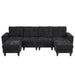 Sectional Sofa With Movable Ottomans, USB Ports & Foldable Side Tables - Black