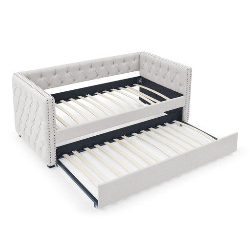 DreamlandModern Design: Elegant linen upholstery with button-tufted backrest and recessed square arms for a contemporary look Functional Daybed: Transforms...