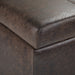 - Upholstered with a durable Distressed Brown Vegan Faux Leather