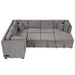U-Shaped Sectional Sofa Pull Out Sofa Bed With Two USB Ports, Two Power Sockets, Three Back Pillows And A Storage Chaise For Living Room - Light Gray