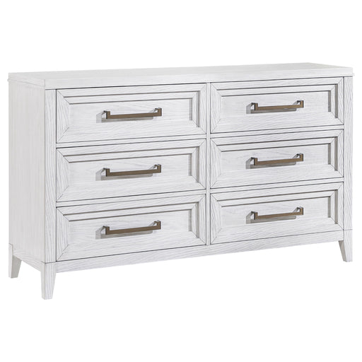 CoasterEverydayLight distressing offers depth and dimensionality to a modern six-drawer dresser. Perfect for clothing and other accessories, it features a double ...