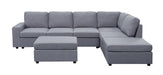 Marley - 7 Seat Reversible Modular Sectional Sofa With Ottoman - Light Gray