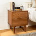 Mid-Century Modern 2 Drawer Solid Wood Nighstand With Cutout Handles - Caramel