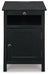 Add big character to a small space with this chairside end table. With its compact size and strong silhouette, it can go anywhere and blend easily into the decor. Less is so much more with the Shaker-inspired design and whitewashed wood grain finish. Loaded with form and function, this end table displays accent pieces and stores essentials securely while keeping devices powered up.