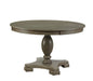 • Table Design and Materials: The dining table features a classic round tabletop supported by a single turned pedestal base. It is crafted from RBW, birch veneer, and MDF with a wood top and apron, offering a sturdy 25mm thickness, ideal for intimate dining spaces.