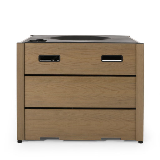LSI Patio FurnitureStylish Design: Features a hand-painted aluminum tabletop with a wood grain finish for a sophisticated look. Hidden Propane Tank: Access the propa...