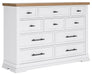 Ashbryn - 8 Pc. - Dresser, Mirror, Chest, California King Panel Storage Bed, 2 Nightstands - White / Natural