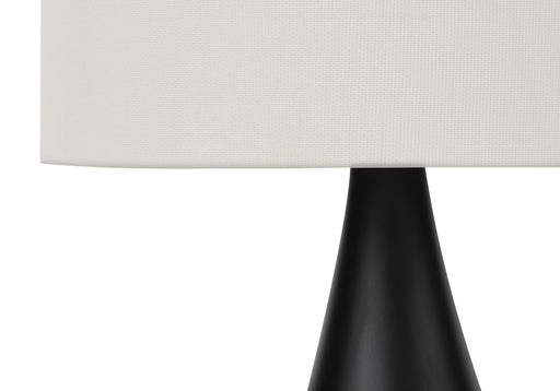 8th StreetStylish Design: This set of two table lamps features a black metal teardrop base and ivory linen tapered drum shades, adding a contemporary tou...