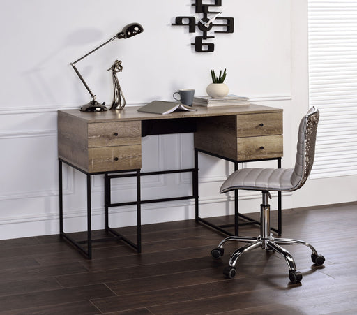 AcmeDesign and Style: This writing desk combines rustic charm with industrial flair, featuring a weathered oak finish and an antique silver metal...