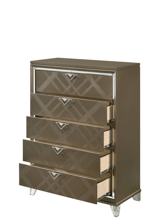 AcmeAmple Storage: This platinum chest features five spacious drawers, offering plenty of storage space while enhancing your bedroom's decor with...