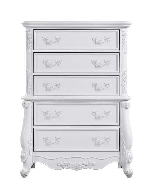 AcmeGenerous Storage: The Laveda Pearl White Finish Chest features five deep drawers providing ample space for storing clothes, linens, and other...