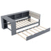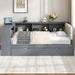 Upholstered Headboard Twin Platform Bed With Storage Shelves, Trundle, Charging Station - Gray