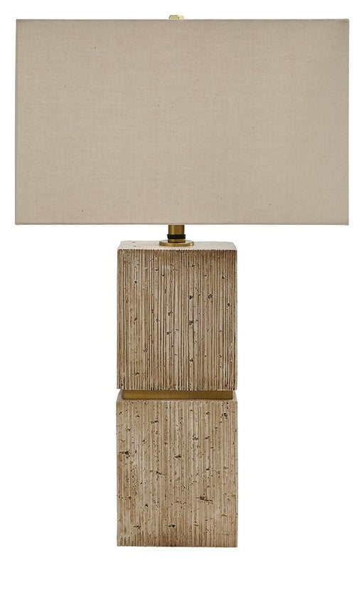 Signature Design by Ashley®Shine a contemporary spotlight on your good taste with this table lamp. The antiqued white and goldtone finish of its base adds texture and interes...